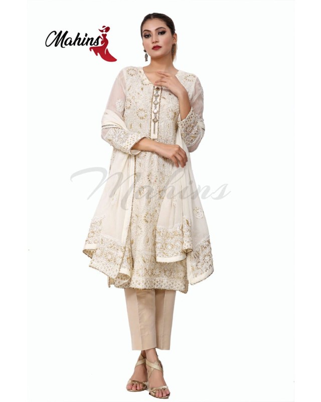 off white pure chiffon shirt and dupatta with chikenkari and delicate gota work